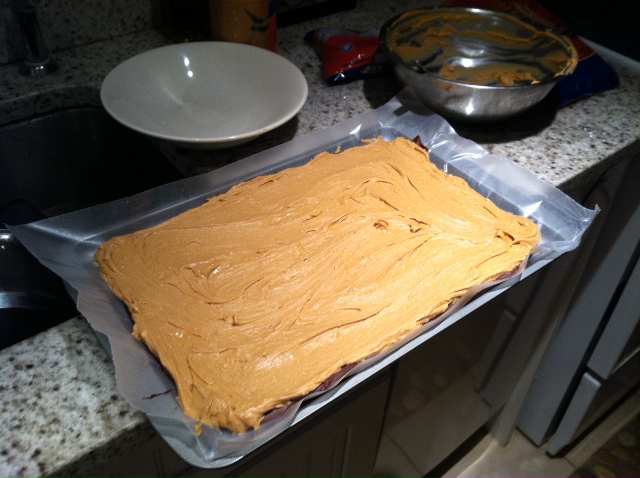 The finished product: ooey gooey layers of melted chocolate and peanut butter -